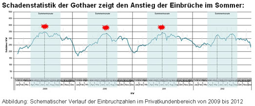 - Einbrüche steigen mit Beginn der Sommerferien deutlich an